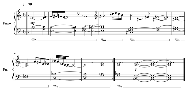 ||: C 3 A 2 G 3 E 2 D 3 B 5 F# 5 C# 5 G# 5 Eb5 Bb 5 F 5:||